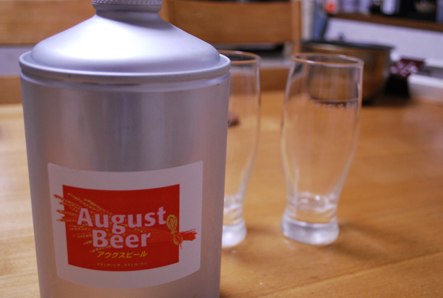 は、今回援農にあたり、こっそり(?)無濾過のアウグスビールを持ってきてくれたのでした。外のお店でビールを飲む機会が年に一~二回の僕たちにとって