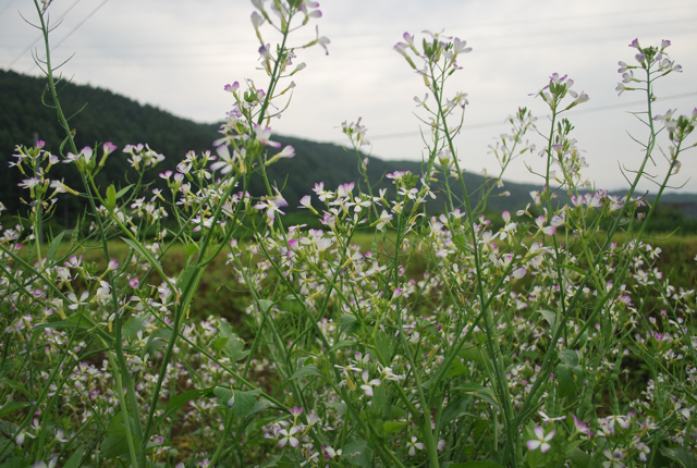 答えは大根の花。大根って、こんなに可愛らしい花を咲かせるんですね。今年は大根がほとんどトウ立ちしてしまい、出荷できませんでしたが、この花景色を楽しめたから、少し癒されました。