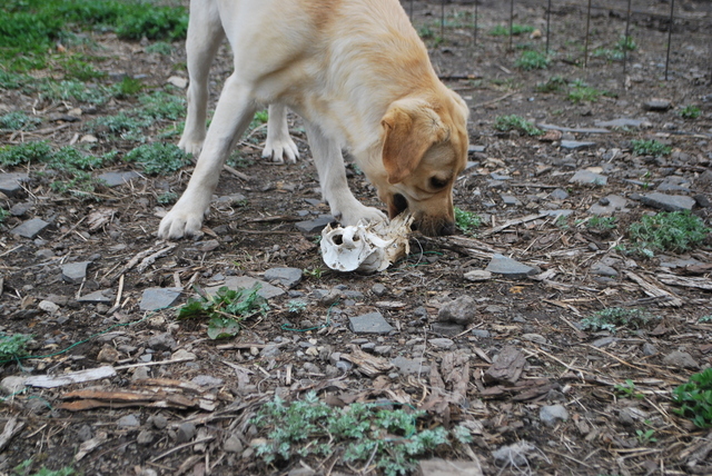 そのうちにガリガリと頭蓋骨を食べ始め・・「やめて~!そんな子に育てた覚えはないわ~~」と急いで取り上げました。