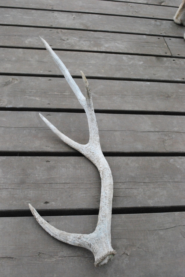 鹿の角。長さ60㎝くらい。近所の森を散歩中、拾いました。