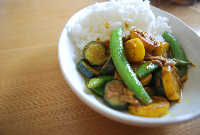 彩りのいい、黄色のズッキーニをいれたので、きれいなカレーになりました。もちろん自家製です。